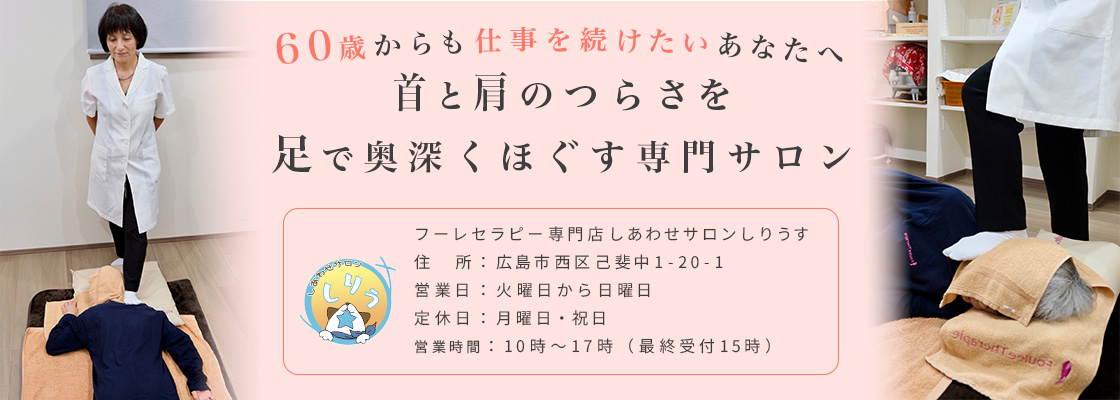 足だけを使う新しいマッサージで、頑固な疲れや、足のむくみ、首凝り。、肩こり、背中のハリをとり、いつまでも健康で若々しく前向きな女性でいたい方に笑顔でスッキリした気分になれ、心身ともに楽になれる「あなただけの素敵な空間」を提供します。